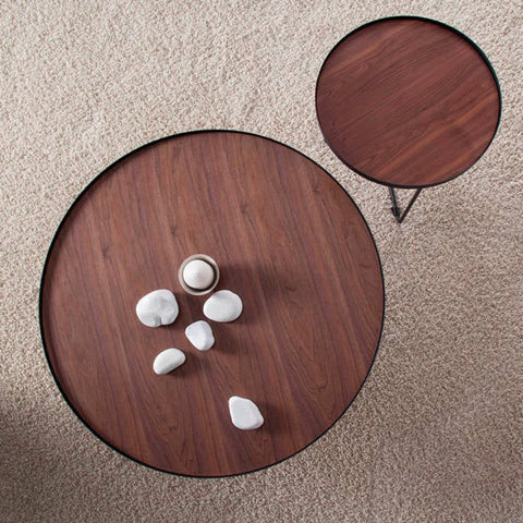 La Mesa Auxiliar Colección Elegance combina diseño moderno y materiales de alta calidad. Con su tapa de nogal natural y estructura metálica negra, esta pieza aporta personalidad y calidez a cualquier ambiente contemporáneo.