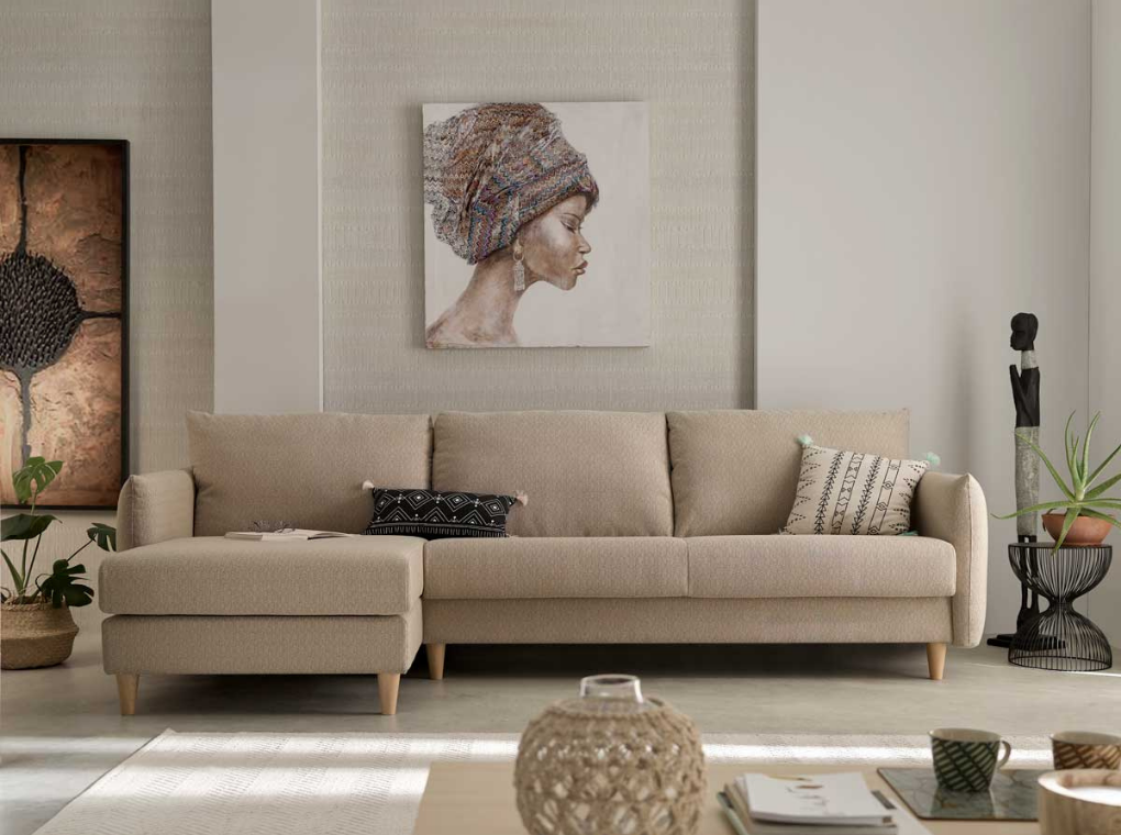 Sofá con chaiselongue cama modelo LAGOS con apertura italiana