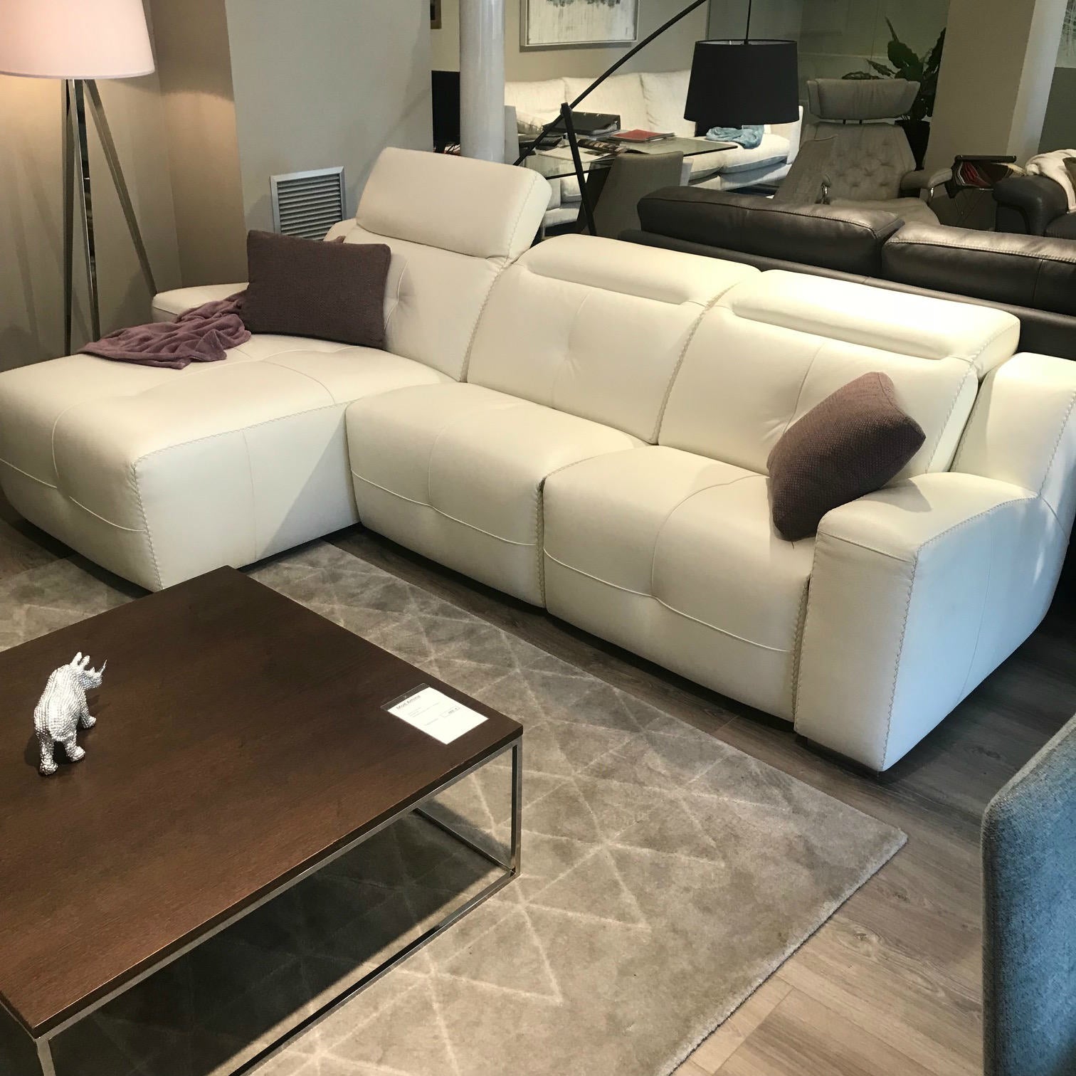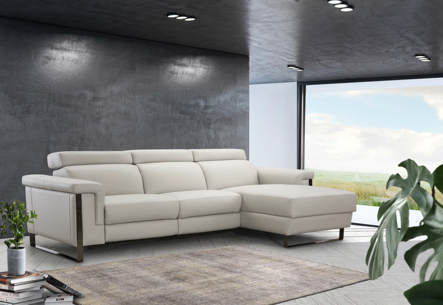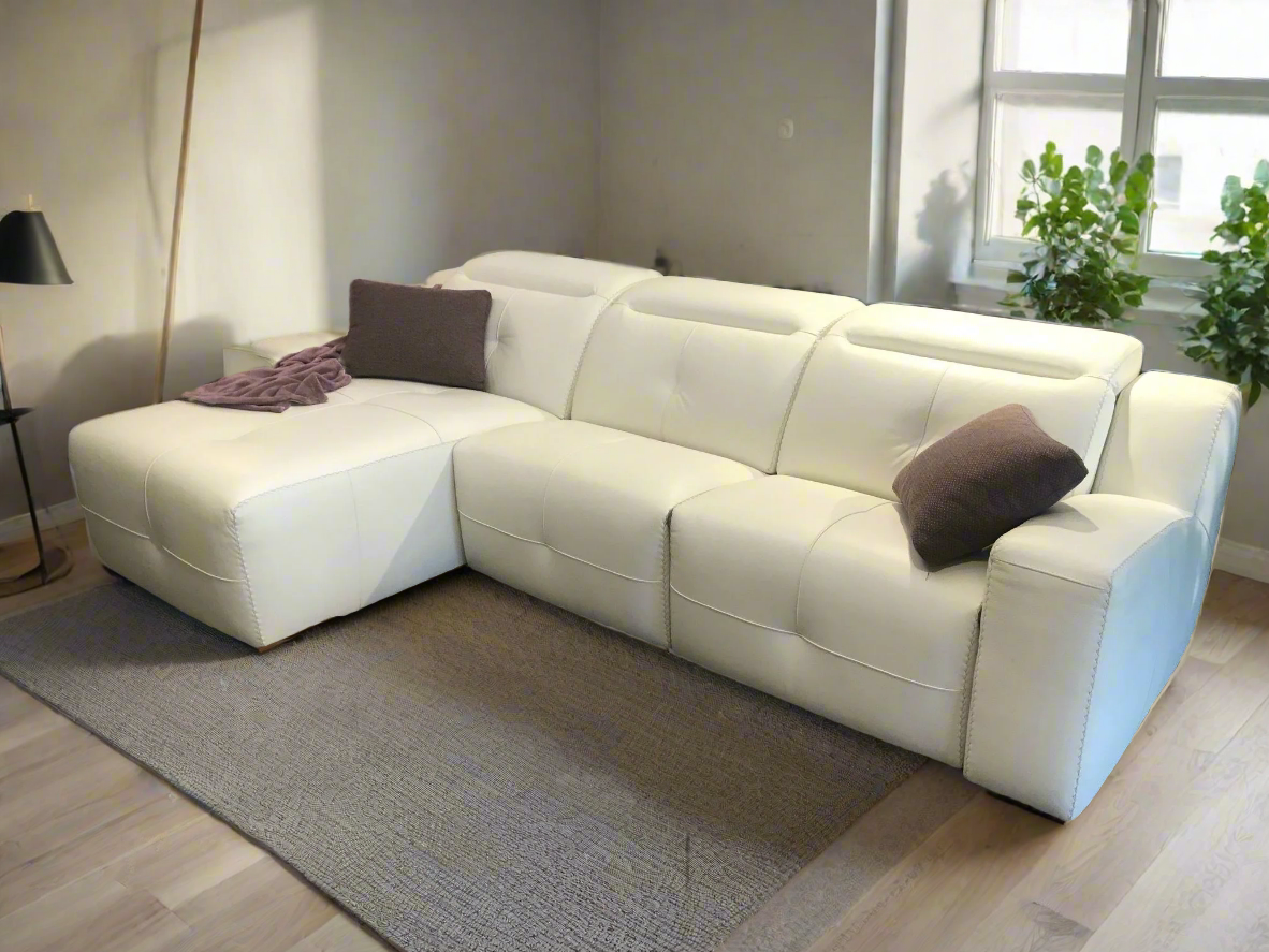 Chaiselongue modelo PUGLIA con cabezal eléctrico ajustable y asiento relax en piel.