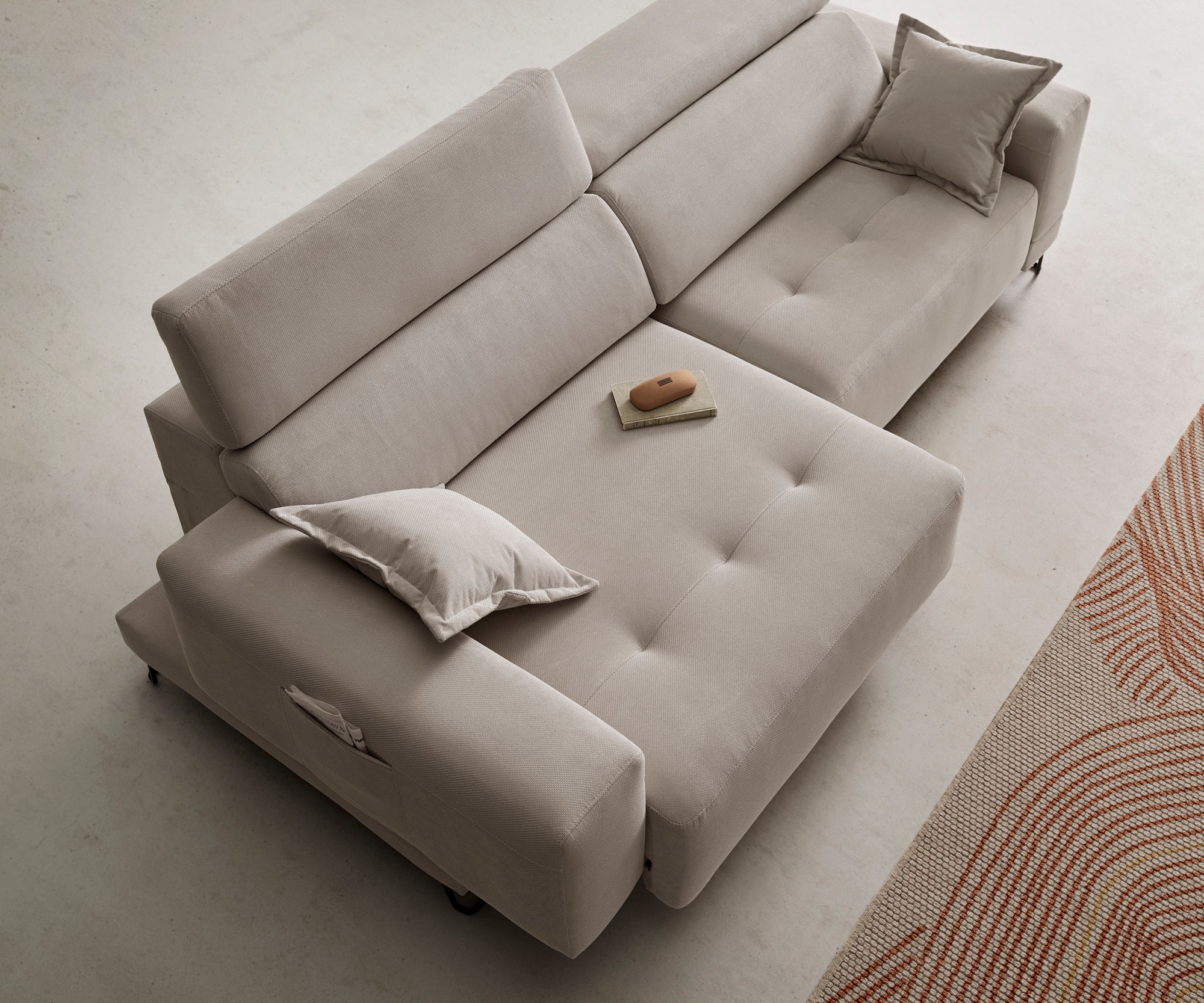 Sofá cama con cabezal reclinable y sistema de apertura italiana AMORE