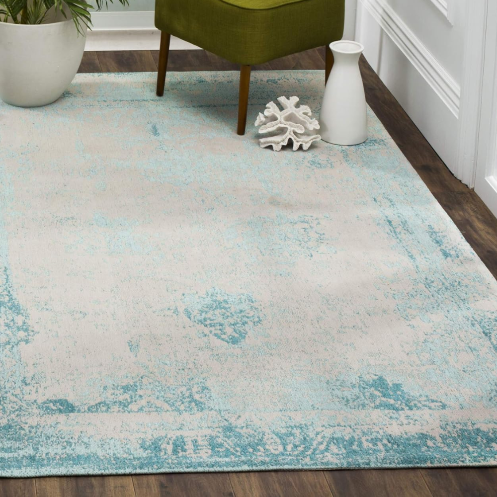 Fácil de limpiar mediante aspirado y cepillado, esta alfombra está disponible en varias medidas, adaptándose a cualquier estancia del hogar.