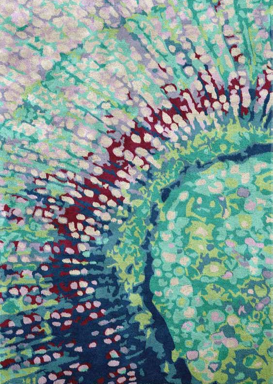 La alfombra QUARTZ de Sidivani mezcla un 55% de viscosa y un 45% de lana, creando una textura única que destaca en cualquier ambiente.