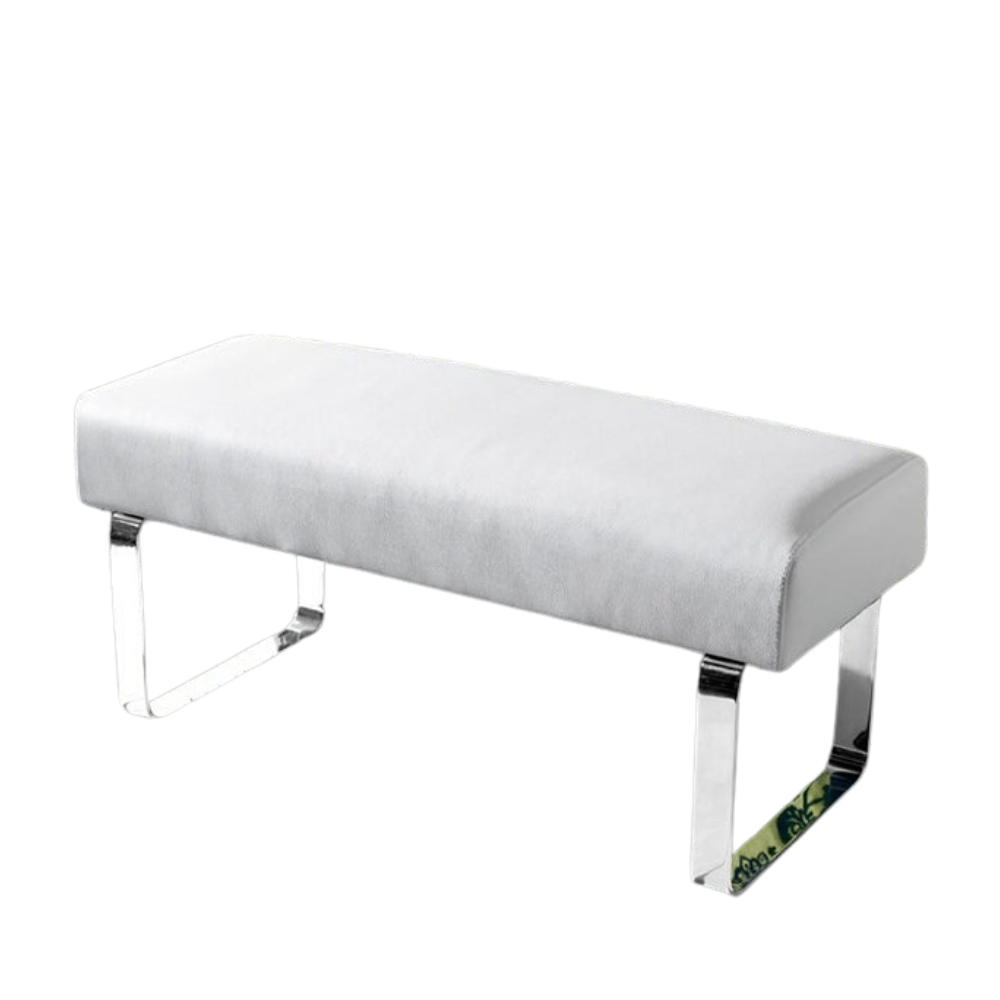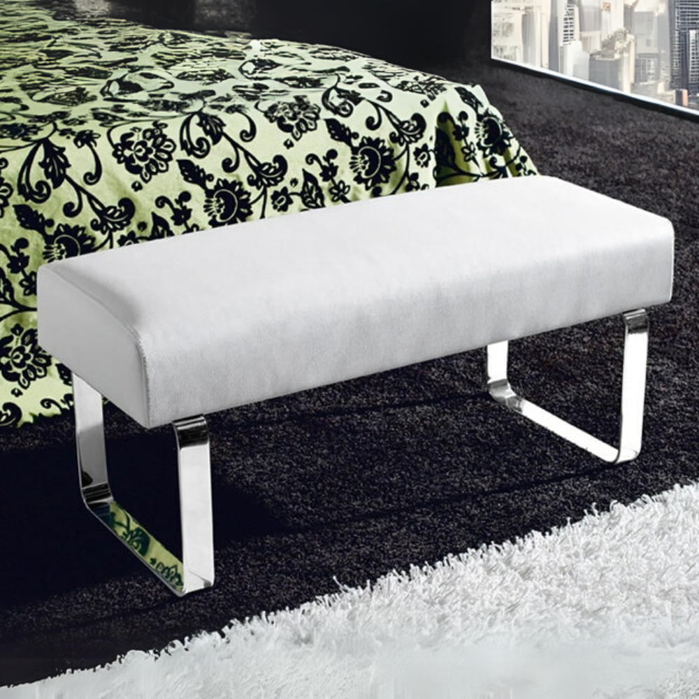 Banqueta de diseño contemporáneo ideal para añadir funcionalidad y estilo a cualquier estancia. Su parte superior, disponible en piel sintética o tela antimanchas de alta calidad, ofrece una superficie suave, duradera y fácil de mantener. La base de acero inoxidable proporciona firmeza y un toque moderno, haciendo de esta pieza una opción versátil para dormitorios, vestidores o zonas de descanso.