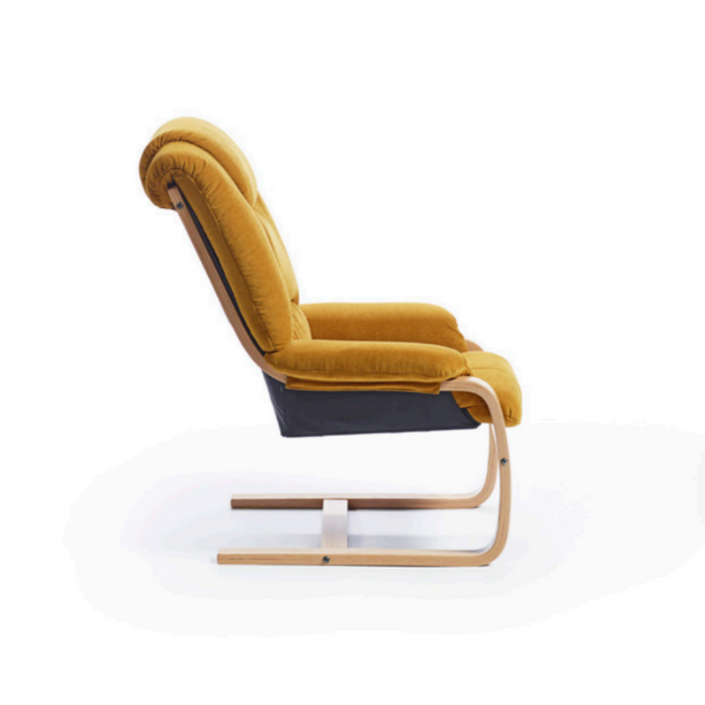 La butaca LOY es una pieza sencilla y acogedora, diseñada con un estilo de tipo ballesta gracias a sus patas y sujeción de madera, que se combinan a la perfección con la comodidad de su asiento y respaldo.
