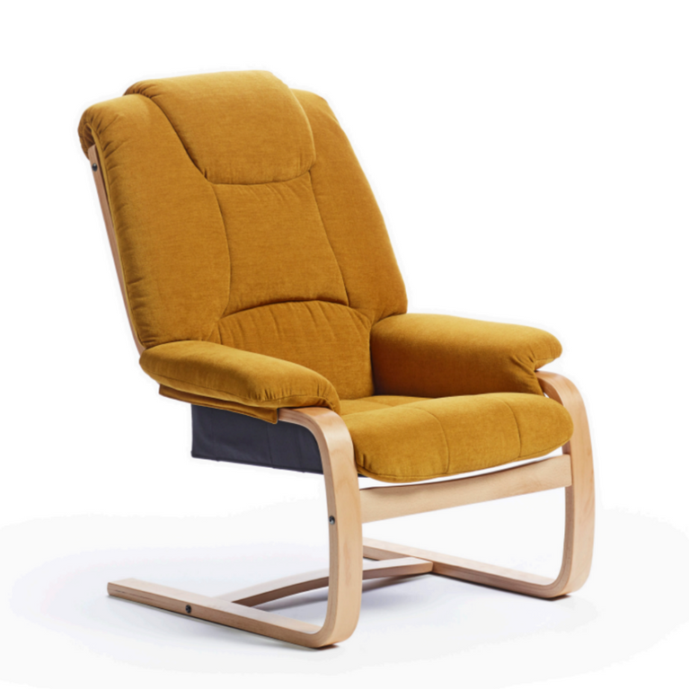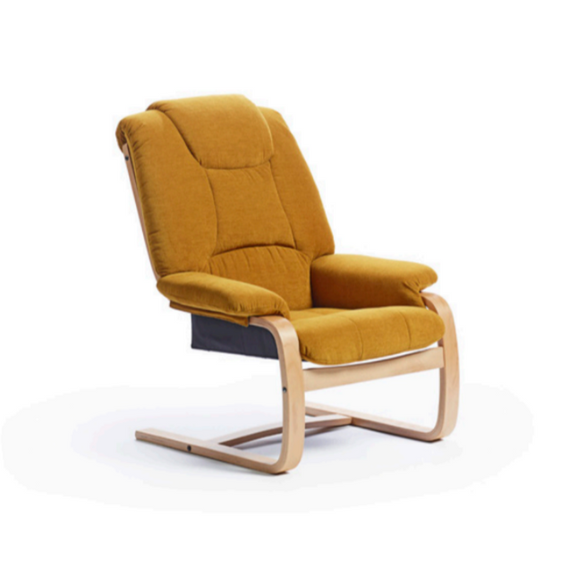 Sencilla y acogedora butaca de tipo ballesta por sus patas y sujeción de madera que combinan a la perfección con la comodidad de su asiento y respaldo.