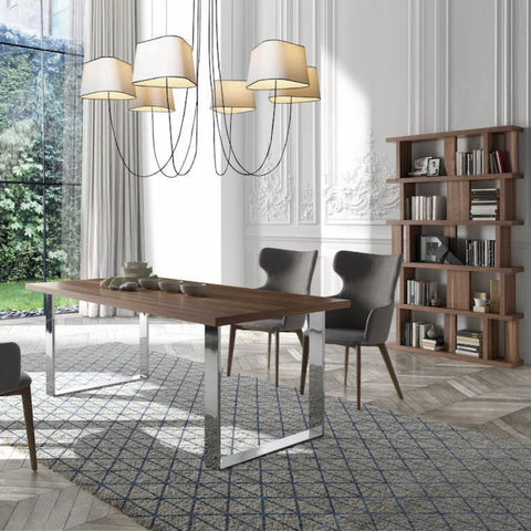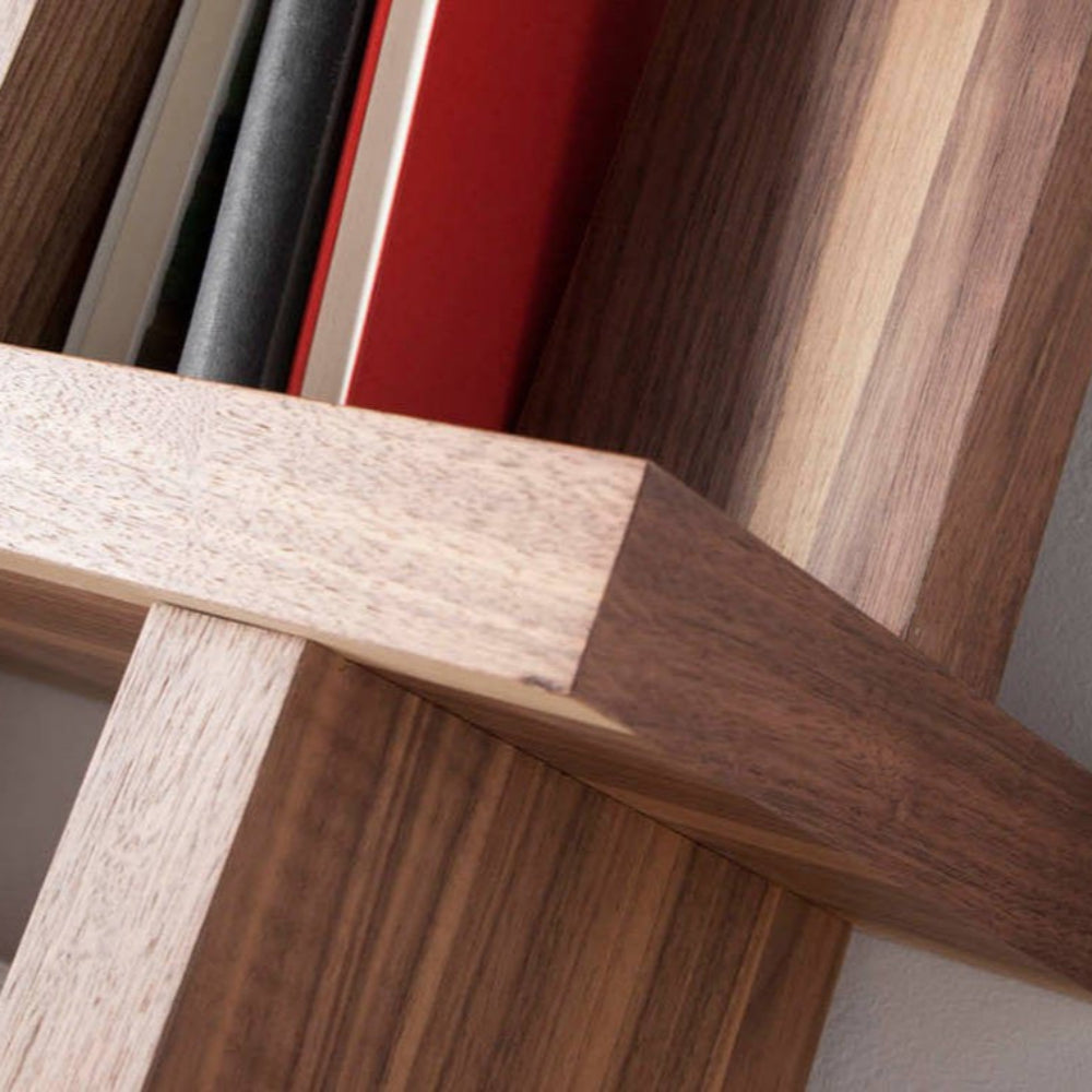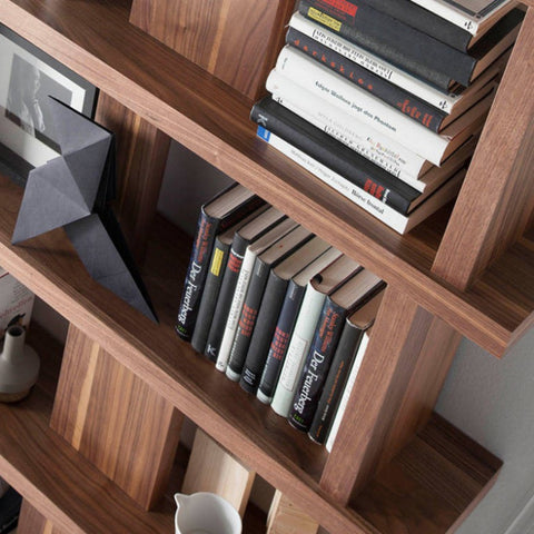 Estantería de diseño contemporáneo fabricada en madera chapada en nogal, que aporta calidez y elegancia al espacio. Incorpora tres puertas inferiores para ofrecer mayor capacidad de almacenamiento sin renunciar a la estética. Su diseño limpio y elegante la convierte en una pieza funcional ideal para cualquier habitación.