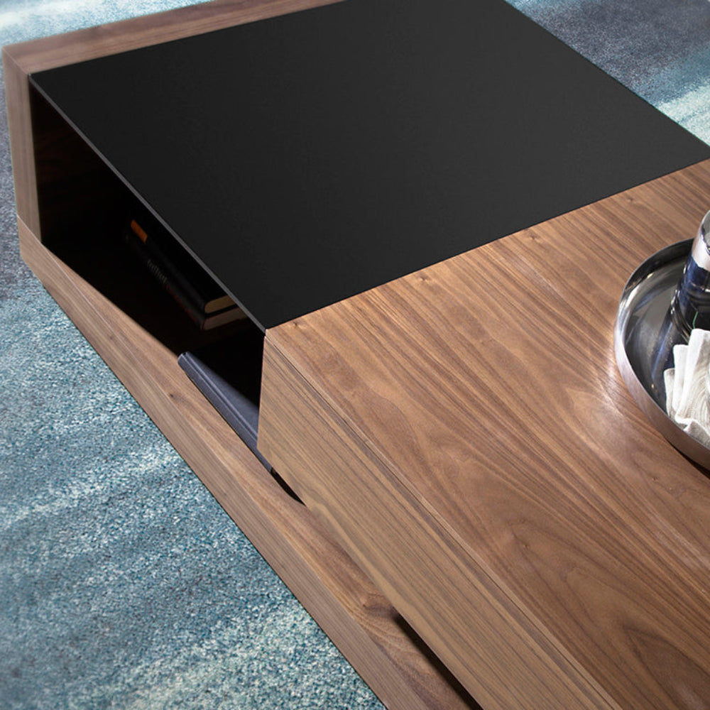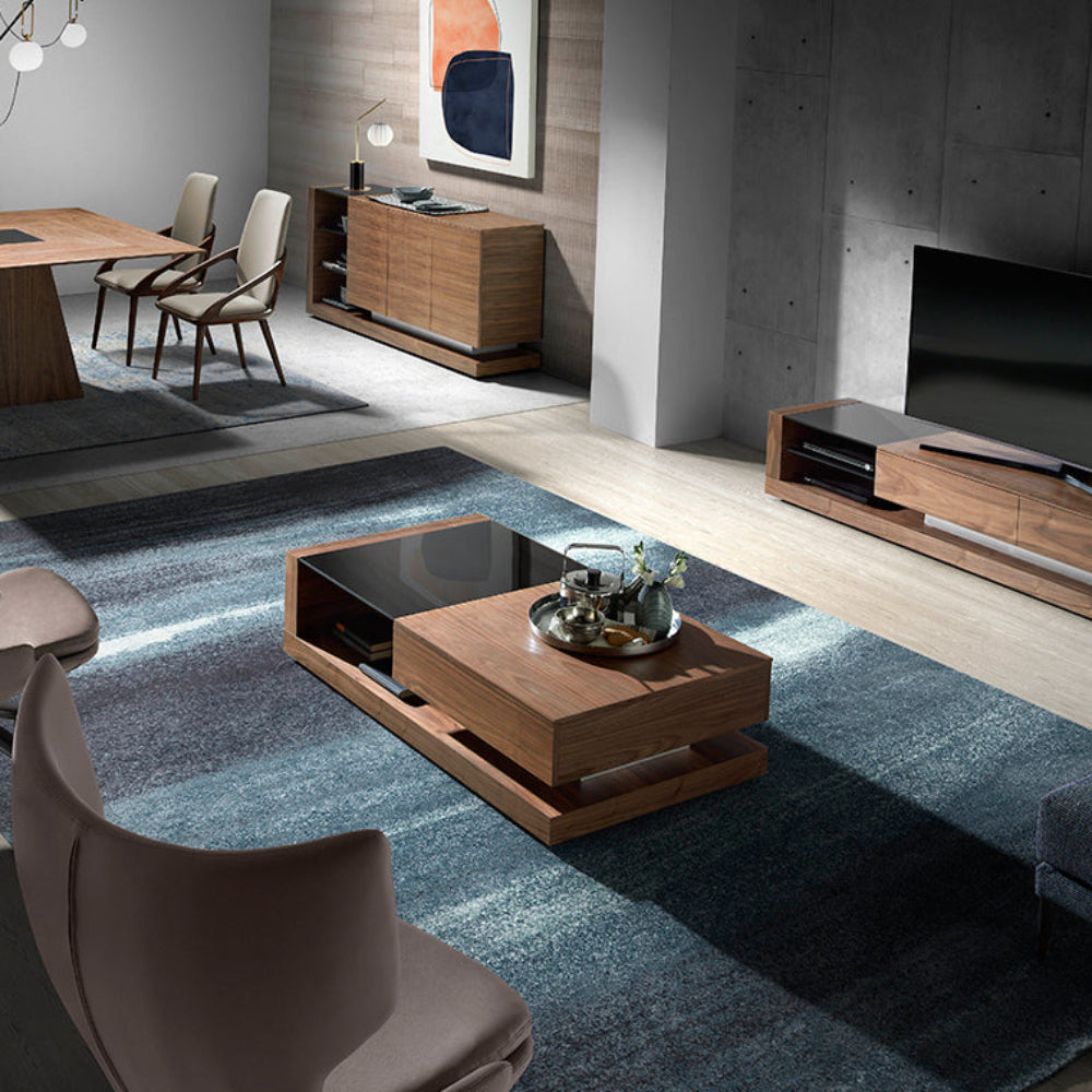 Mesa centro de estilo elegante y sofisticado perfecta para aportar el toque de calidez y estilo que buscas a tu estancia, así como mantener todo en orden gracias a su gran espacio de almacenaje con cajón con sistema de cierre retardado y hueco lateral abierto.