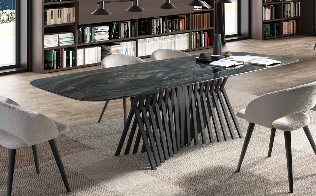 La mesa de comedor fija modelo NC-LF ofrece un diseño contemporáneo con una tapa rectangular de porcelánico B de 12 mm de espesor, ideal para quienes buscan una pieza funcional y estilizada. Sus patas lacadas en negro opaco añaden un toque sofisticado que encajará perfectamente en cualquier espacio.