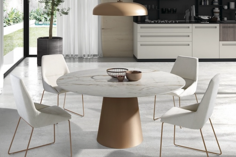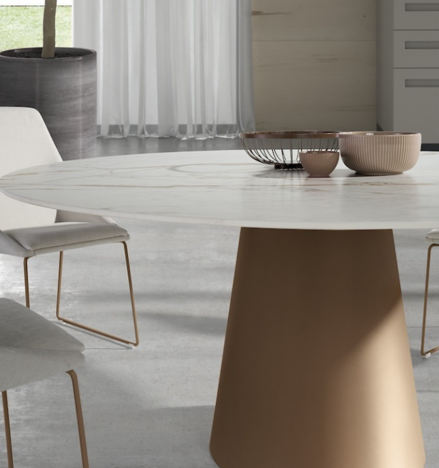 Mesa comedor de diseño circular tapa fija modelo RTVG.