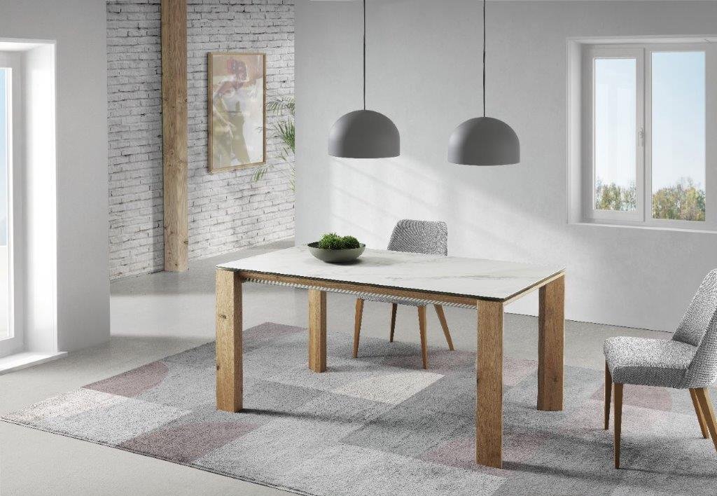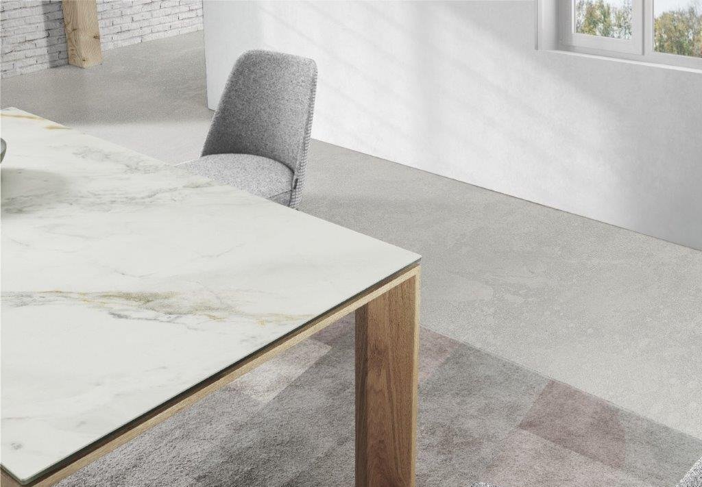 Mesa comedor de diseño extensible modelo IN-C tapa porcelánico