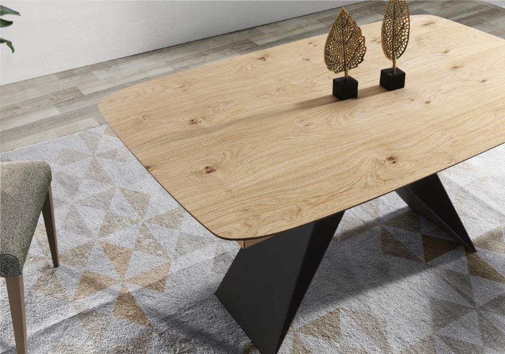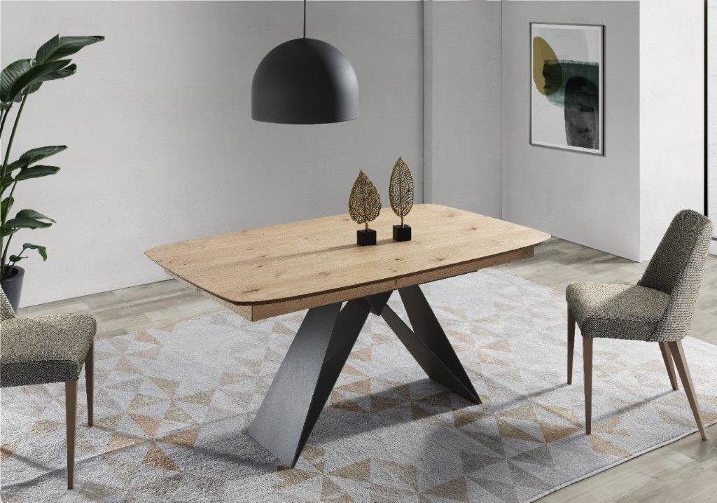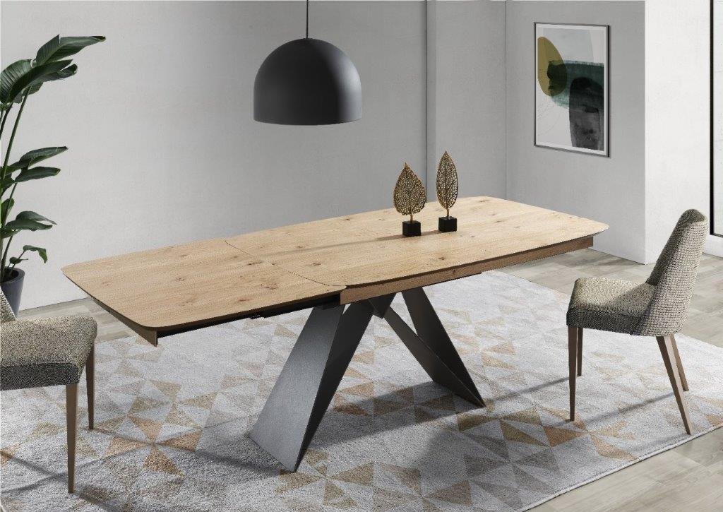 Mesa comedor de diseño extensible modelo IN-YKK tapa madera