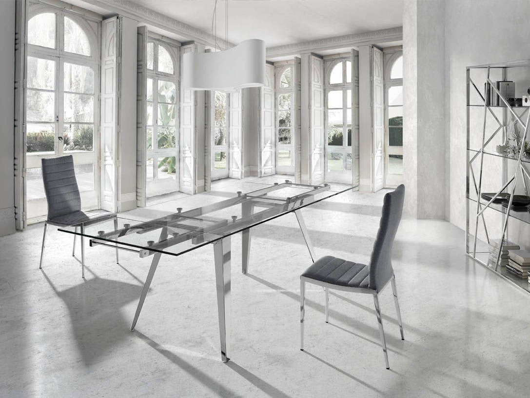 Mesa de comedor extensible con tapa de cristal – Colección Elegance