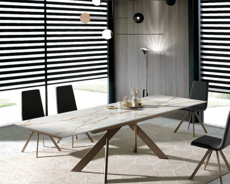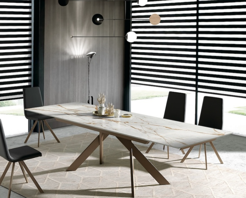 Mesa comedor fija o extensible de diseño pie central modelo RTKRSS.
