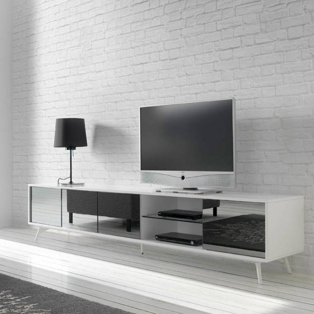 Mueble de TV con Puertas de Espejo Gris Colección Elegance