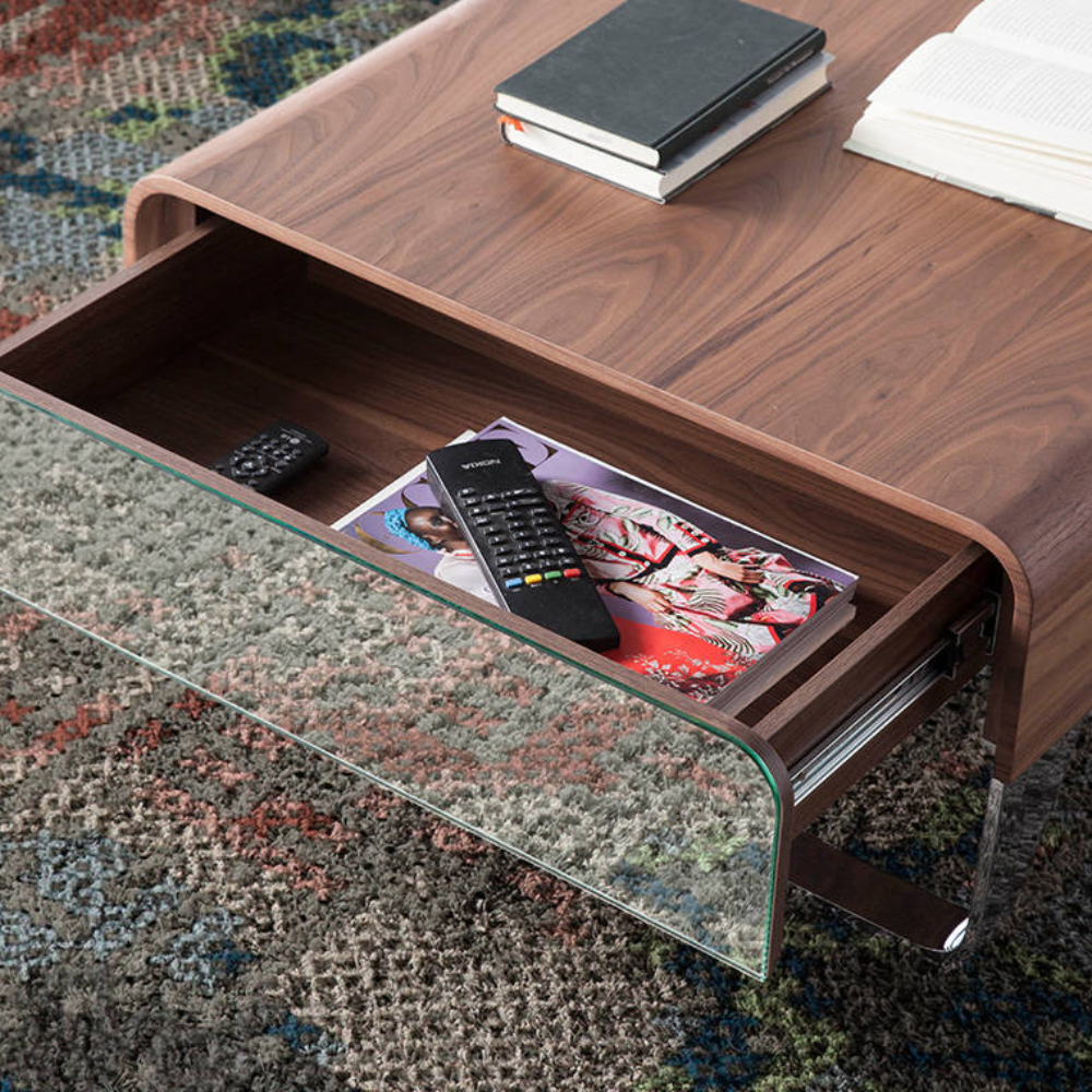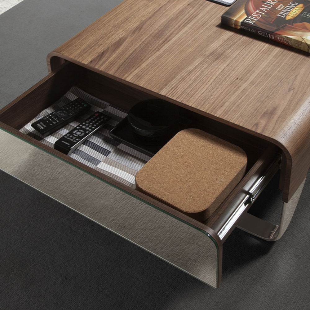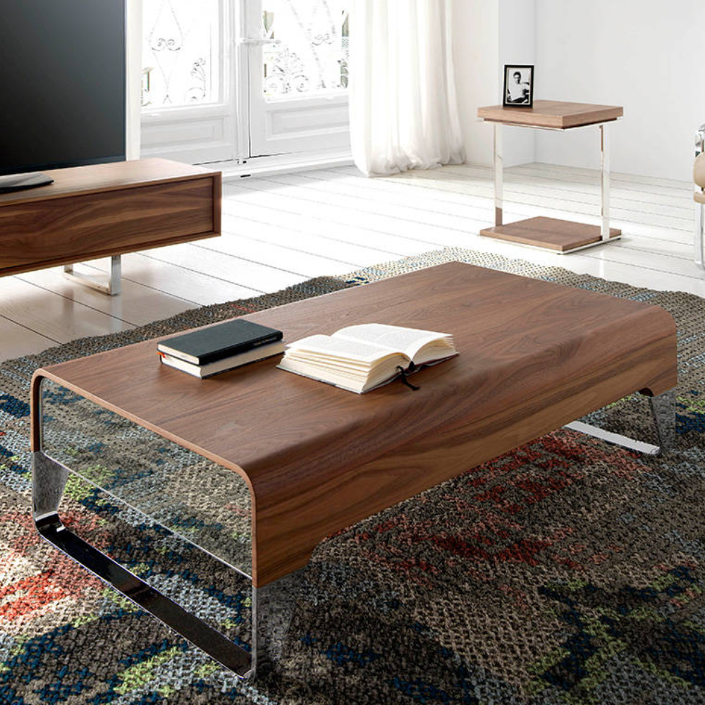 La mesa de centro ELE2001 combina a la perfección funcionalidad y diseño contemporáneo. Fabricada en chapa de nogal con patas cromadas, esta pieza se convierte en el centro de atención del salón gracias a su estilo elegante y su práctico diseño.