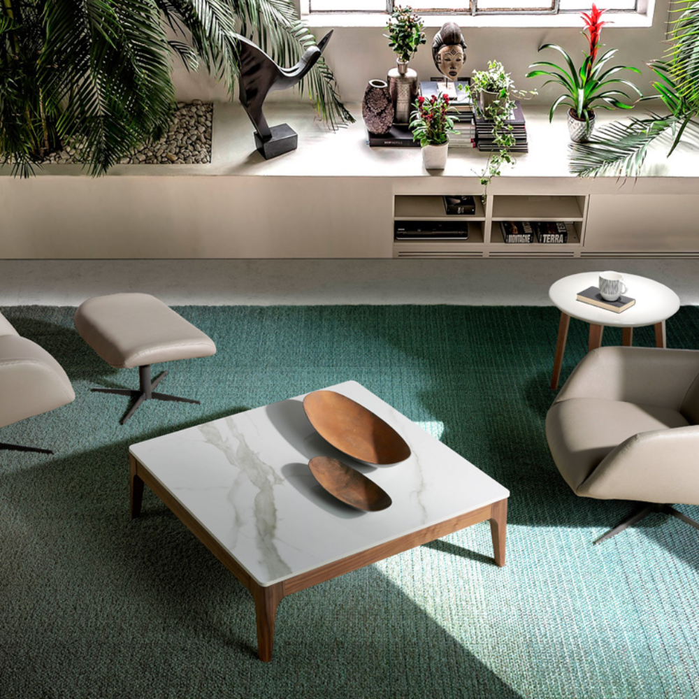 Gracias a su estructura baja y formato cuadrado, esta pieza invita a crear ambientes armoniosos y funcionales, donde la estética se une con la practicidad. Ideal para espacios contemporáneos que buscan un mobiliario atemporal con personalidad propia.