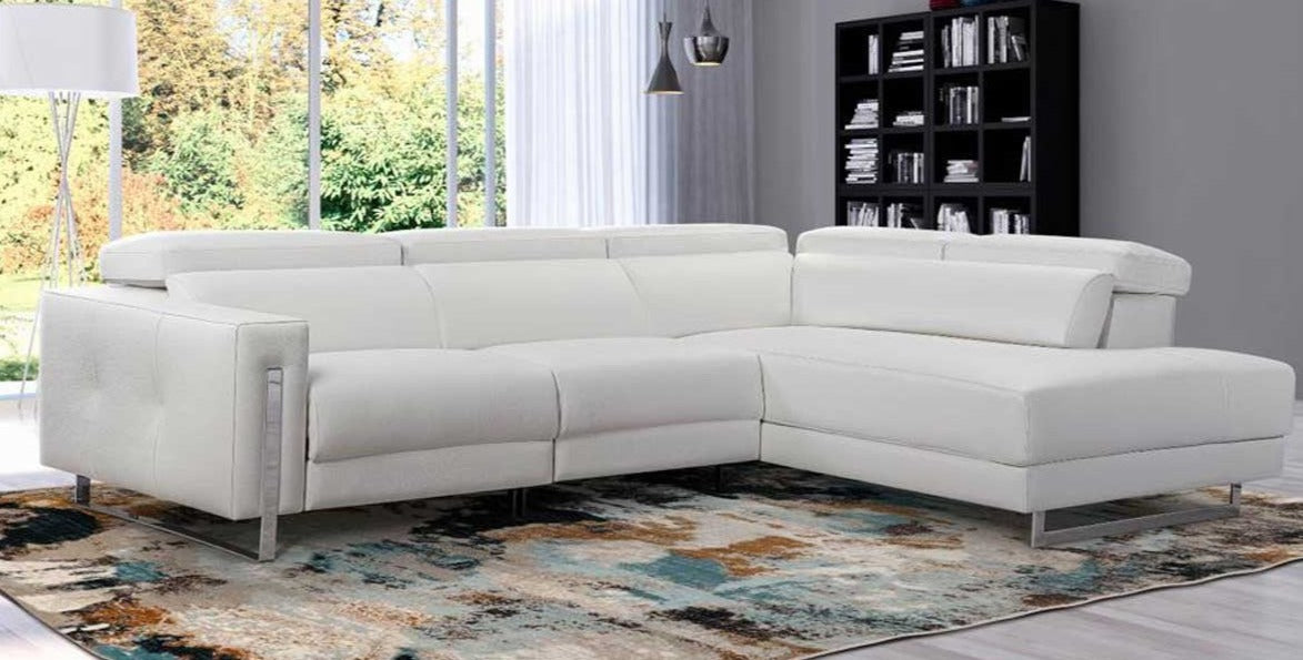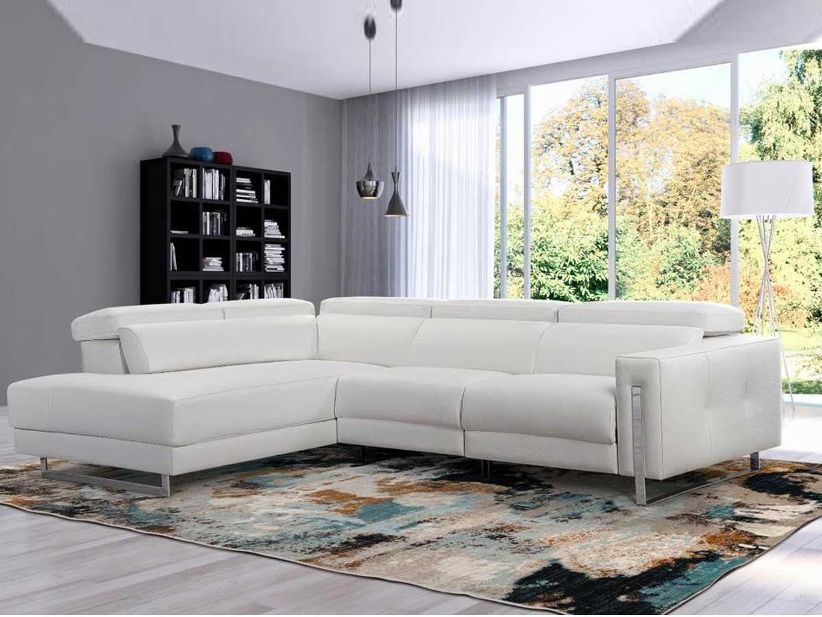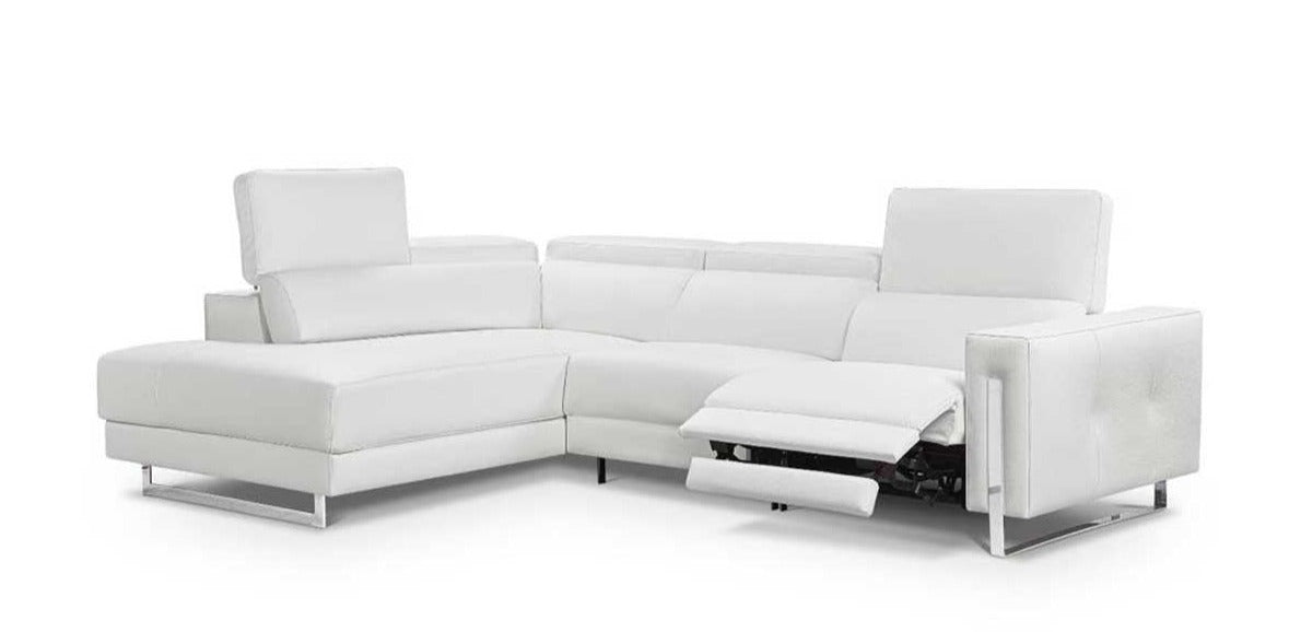 Rinconera de diseño abierto modelo Norman con 2 asientos relax motorizados en Piel Blanca