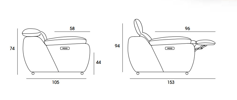 Si abres el mecanismo al máximo, tus piernas alcanzarán una postura relajada muy beneficiosa para la circulación. Ideal para cuando llegas a casa con las piernas cansadas… Y mientras te relajas puedes cargar tus dispositivos electrónicos desde la botonera con puerto USB.