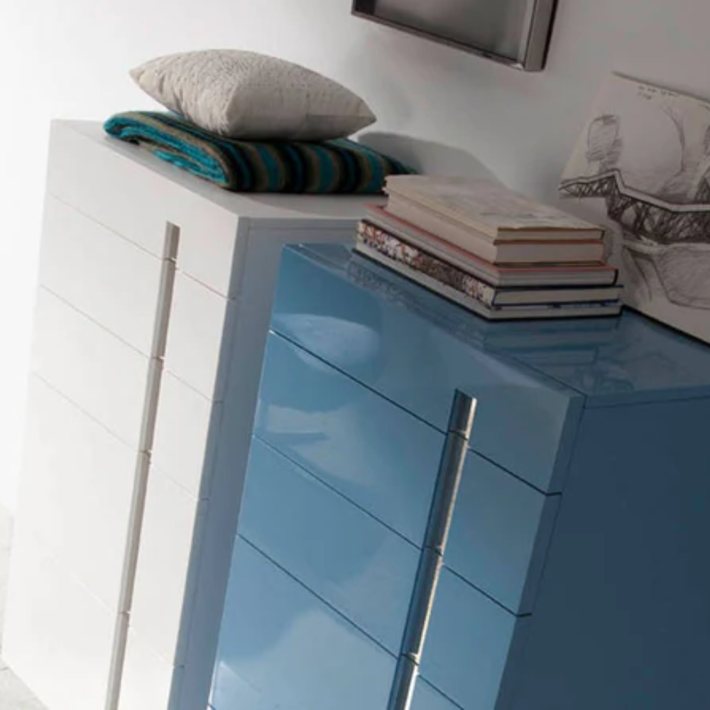 - Sifonier de cinco cajones fabricado en DM lacado blanco.