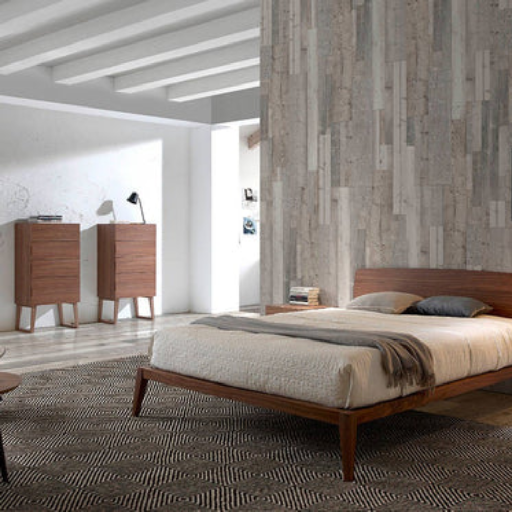 - Fabricado en madera chapada en nogal, con un acabado cálido y natural.