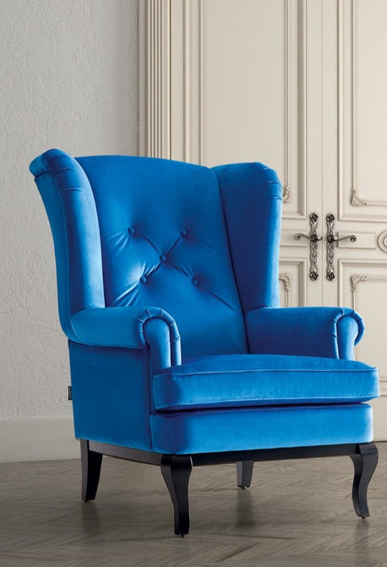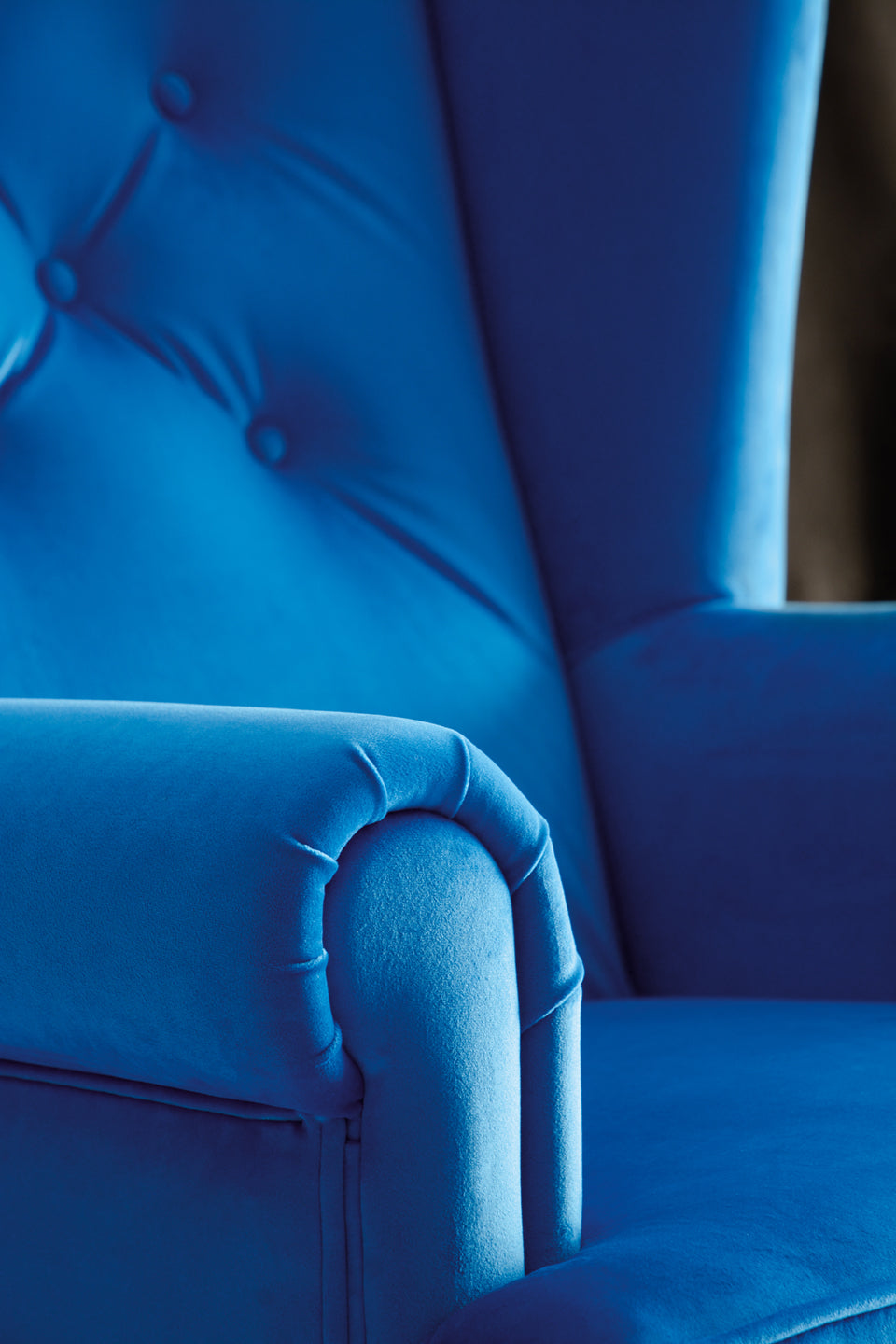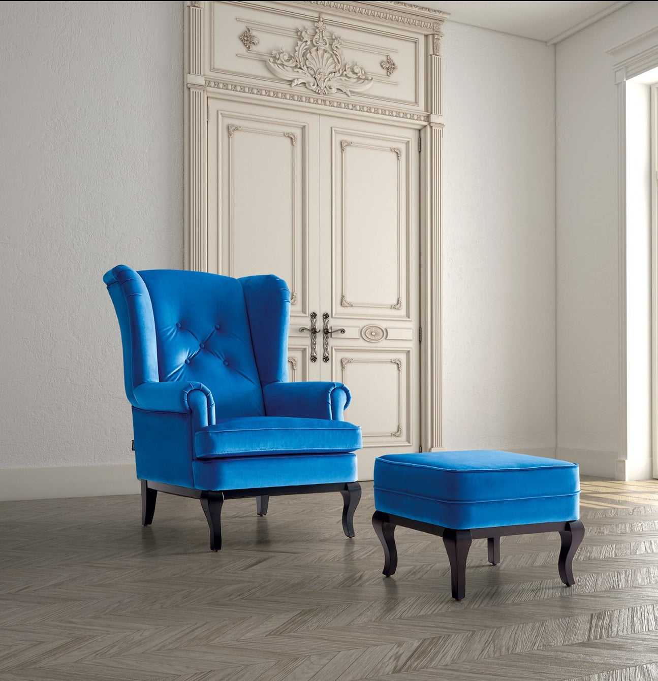 Sillón orejero modelo DANUBIO con opción de puf Azul eléctrico.