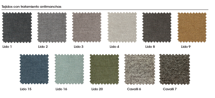 Tapizado en tejido con protección antimanchas teflón, elige tu color en el delegable.