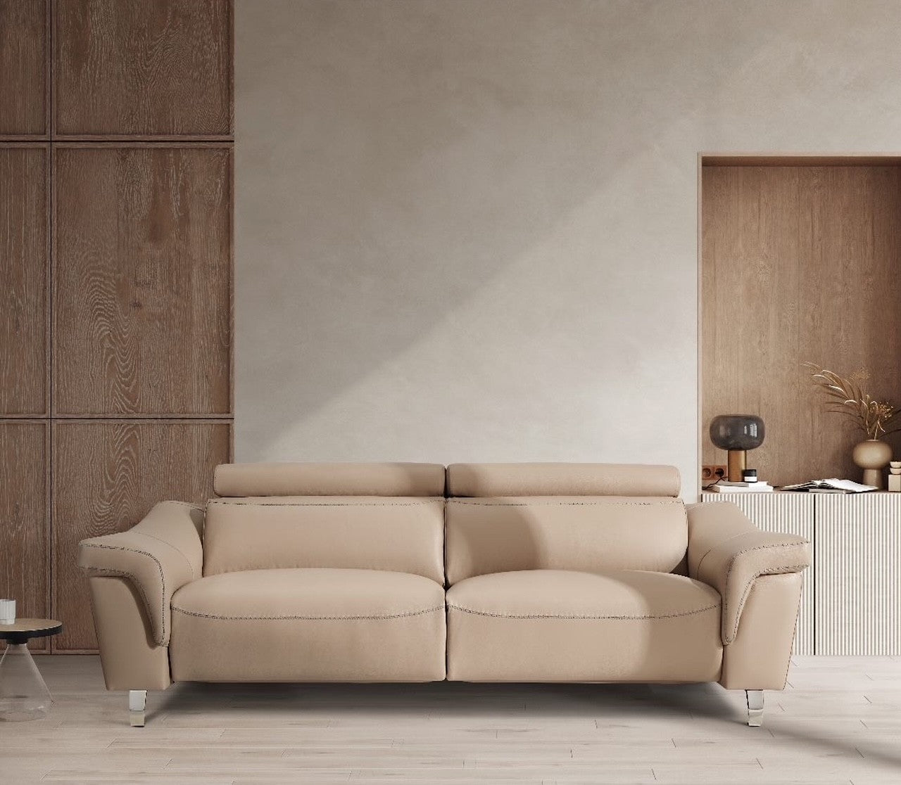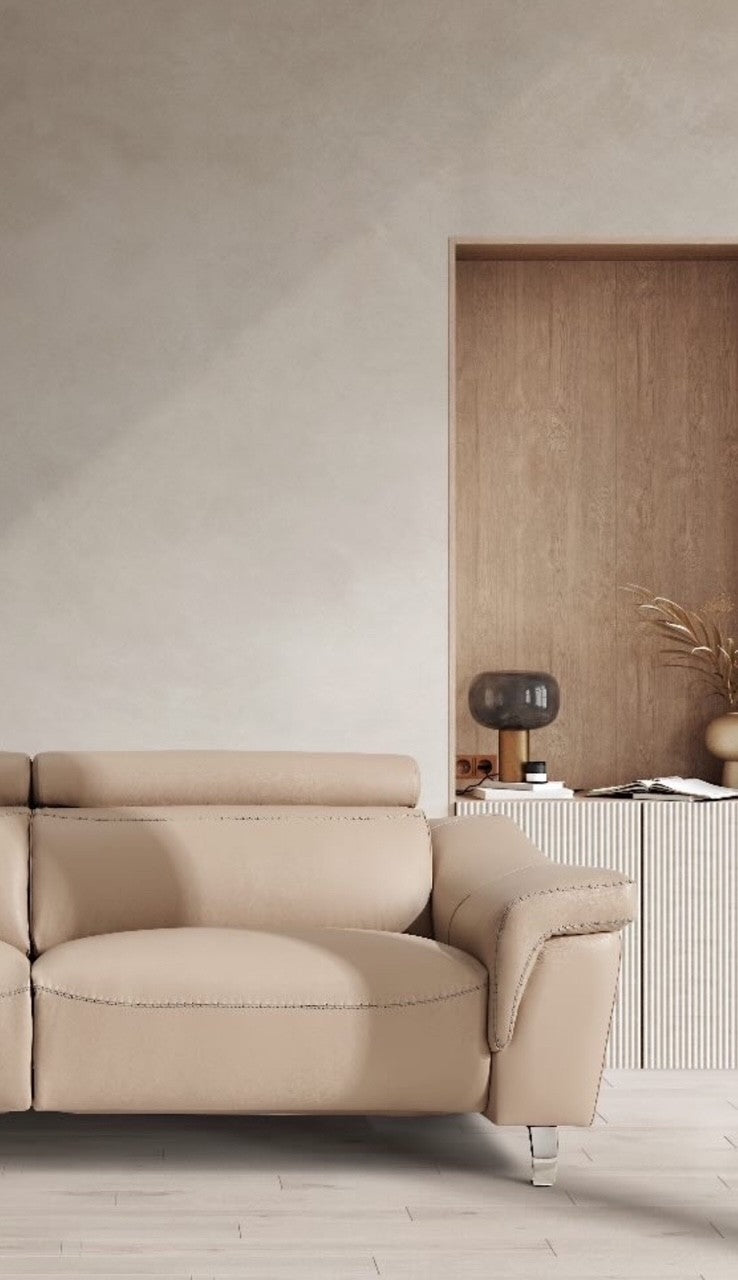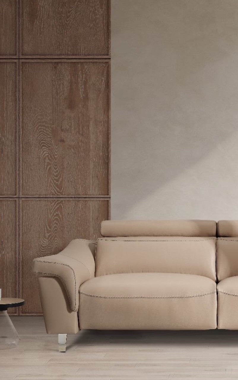 Nuestro sofá relax modelo PADOVA, tapizado en piel natural con cabezales abatibles multi-posición, la unión perfecta de diseño y confort.
