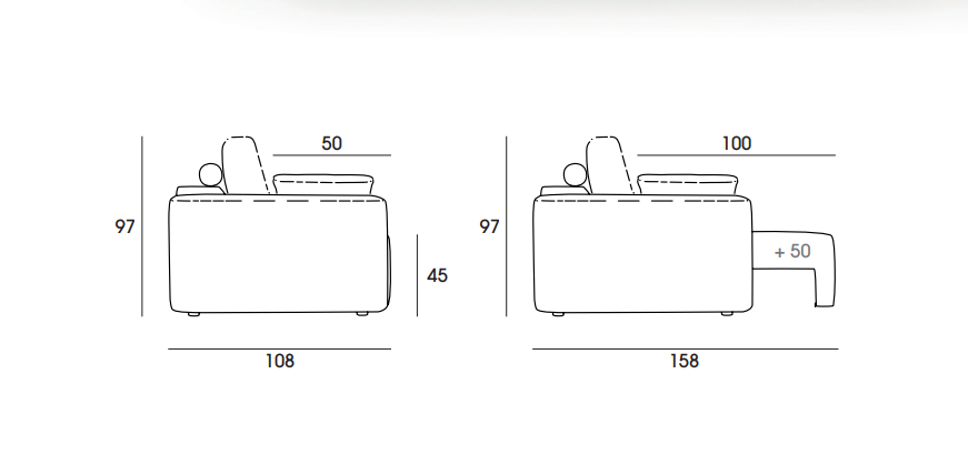 - Costuras decorativas al tono o a contraste (imagen verde agua). Incluye un cojín de 55 x 35 cm. con relleno PLUS por brazo.