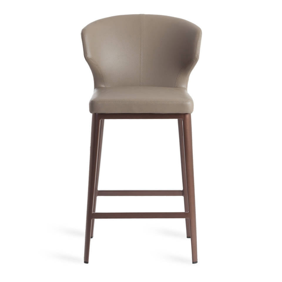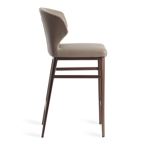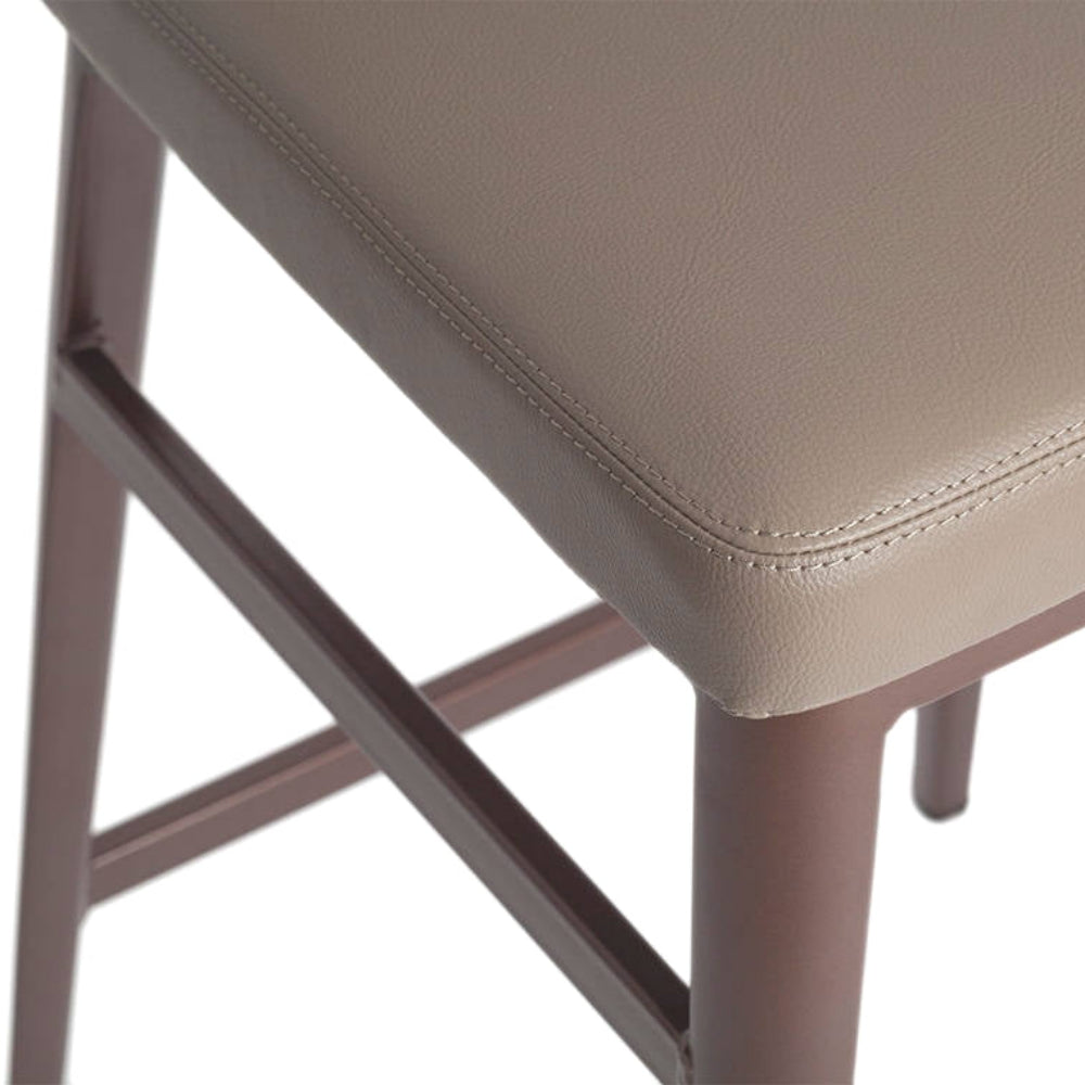 Taburete con estructura de acero y parte superior en piel sintética.